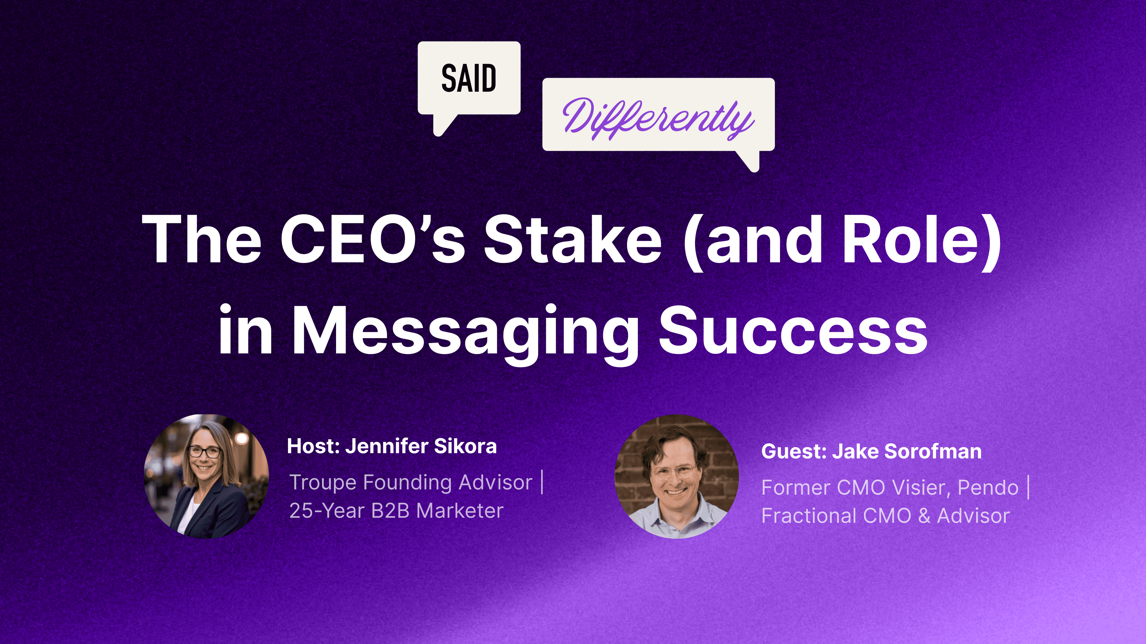 In this episode of Said Differently, we welcome former Chief Marketing Officer of Visier and Pendo, Jake Sorofman, to talk about the critical importance of successful messaging and why the C-suite, especially the CEO, should care deeply about this.